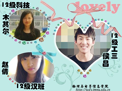 在刚刚结束的内蒙古师范大学校级第十三届“百灵杯”大学生文艺汇演中,球吧网 涌现出了一批非常优秀的舞蹈演员,不间断的训练磨不掉他们的意志,辛苦的汗水淹不了他们热情,最终的成功离不开他们的努力,他们分别是: