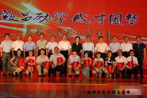 6月21日,2012内蒙古年度大学生“桃李之星”颁奖晚会在内蒙古农业大学举行,10名“桃李之星”获得者及10名提名奖获得者受到表彰。自治区党委常委、宣传部部长乌兰,自治区党委组织部副部长武开乐,自治区党委宣传部副部长张太平,自治区教育厅厅长侯元,自治区团委副书记陈晓东,内蒙古人民广播电台台长张兴茂出席颁奖晚会。我校党委副书记格日乐图与驻呼高校有关领导一同出席颁奖晚会。