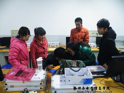 20121124日晚7点,帆老师在物电楼215室为本次科技文化月申报作品的同学进行现场指导。
