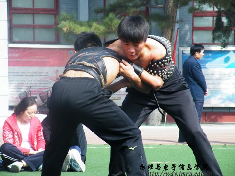依次与网络技术学院、化学与环境科学学院、生命科学与技术学院、音乐学院竞技,荣获男子搏克比赛第一名与女子搏克比赛第三名的佳绩。本次比赛旨在弘扬和宣传蒙古族蒙古式摔跤文化,提高选手的竞技水平,促进学校传统体育运动的发展,为我校蒙古族摔跤,推荐选手,输送人才,从而提高我校蒙古摔跤的整体实力。