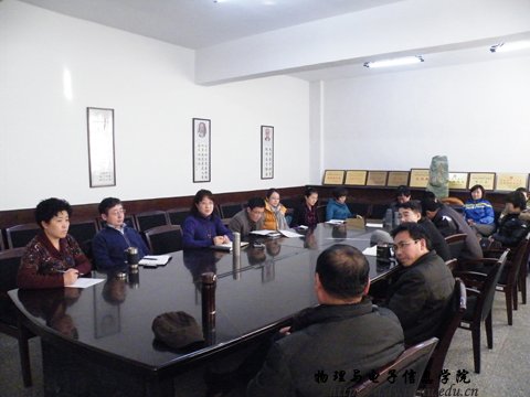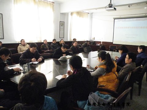 2012年2月23日下午三点,球吧网 领导在物电院一楼会议室举行了有关“实验室建设与安全管理工作会议”,参加此次会议的领导有党支部书记阿梅老师、院长特古斯教授、副院长刘美玲老师、副书记何小龙老师以及各实验室负责人,球吧网 全体实验室、资料室管理人员和实验科任教师参加了本次会议。