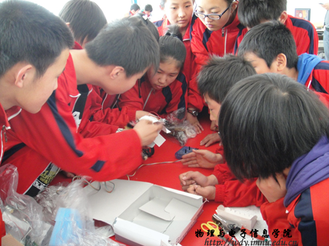 的教育实习基地,中学生们正在开展制作机器人活动
