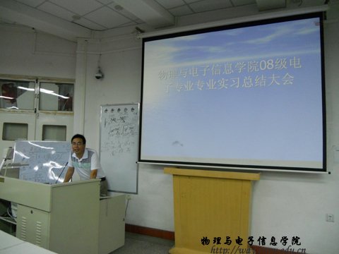 在十一共组织召开08级电子专业专业实习总结大会,参加总结大会的领导老师有:副院长刘美玲老师,电子系李海泉老师。本次总结大会由电子系主任梁学军老师主持。