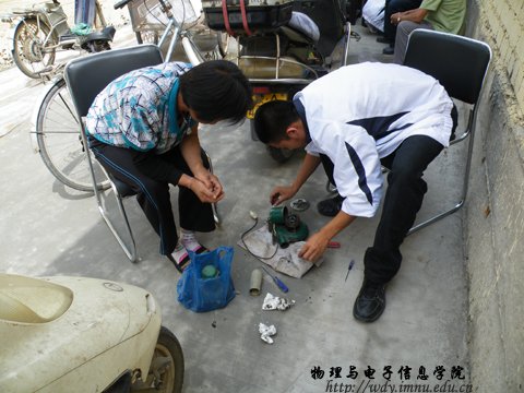积极响应校党委关于组织开展2011年大学生暑期文化科技卫生“三下乡”社会实践活动的号召,前往小黑河镇田家营村为当地的老百姓义务维修各种家电。