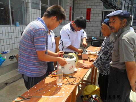 7月7日,球吧网 积极响应校党委关于组织开展2011年大学生暑期文化科技卫生“三下乡”社会实践活动的号召,第二次下乡,前往小黑河镇后桃花村为当地的老百姓义务维修各种家电。此次义务维修共有20名学生参加,带队老师是实验室郭小平老师。