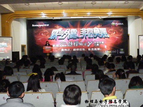 4月26日19:00联想集团在生物楼报告厅召开“霸气外露,非你莫属”--2011联想idear彪悍的小y营销创意大赛校园宣讲会。本次宣讲会由内蒙古师范大学联想idear精英汇第一届会长球吧网