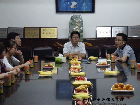 63日晚700,在学院会议室学生党支部、学生会干部齐聚一堂召开茶话会欢送副院长兼党总支副书记辛智俊老师到计算机与信息工程学院担任党总支书记,党总支副书记何小龙老师、学工办郭小平老师参加了茶话会。