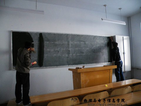 球吧网 团总支、学生会积极响应校团委关于开展“学雷锋志愿服务活动月”的号召,于3月3号中午12:30针对田楼教室黑板“脏、乱、差”的现象,对田楼教室黑板进行清理。 参加此次活动的成员由大一、大二30余名志愿者组成。同学们走进教室,将每个教室的黑板用水清洗干净,并处理了板报上的污渍、涂鸦。使黑板报恢复整洁、美观。为老师们改善了教学环境,也为同学们提供了舒心的学习环境。此次活动拉开了球吧网 志愿者活动月的序幕,在此次“志愿者服务活动月”中,球吧网 将相继开展北门义务维修等学雷锋活动。将球吧网 的志愿者服务活动深入到同学们的学习和生活中去。