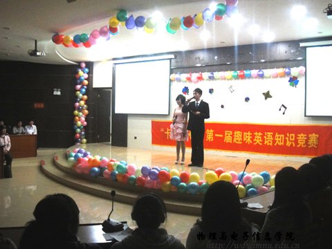 11月30 日晚球吧网 组织09 级科技班黄燕,09级工程一班白木其尔,徐明月及09级汉班王鑫四位同学参加了校级的首届“趣味英语”知识竞赛活动。他们口语流畅,在比赛中表现突出,最终,黄燕获得了第一名,徐明月获得了第四名的优异的成绩。