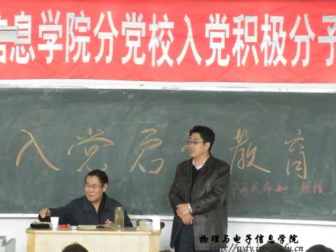 第四期分党校入党积极分子培训班开课。我们邀请到法政学院的阿民布和教授主讲本次党课,阿民布和教授以“入党启蒙教育”为题对全体学员进行了深入的讲解。他强调:入党是影响人一生的重大决定,要用科学的方法学习为什么要入党,不能只从“有用”的角度考虑,要端正入党动机,要了解党的指导思想,了解其根本是辨证唯物论和历史唯物论,要在科学上建立正确的态度和认识。