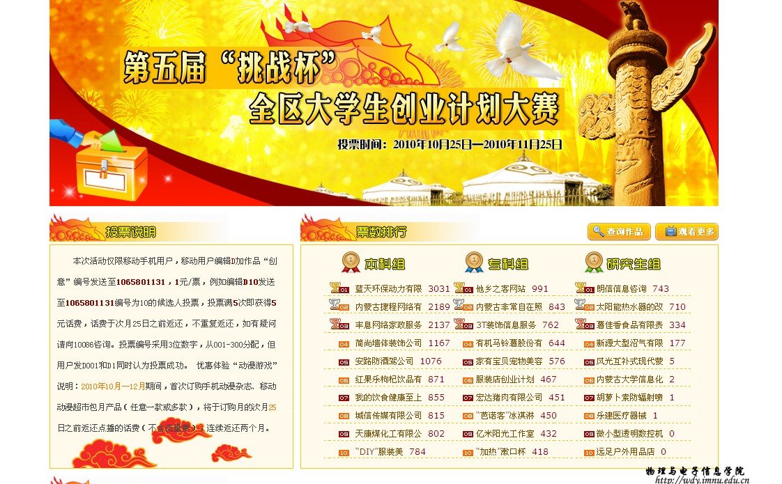 学生投票。投满5次即可获得5元话费(仅限移动用户1元/条,次月25日前返还)。投票时间为:10月25日至11月25日。