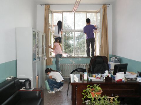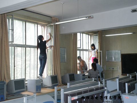 新学年,新气象,新风貌,为了以崭新的姿态迎接新的学期,热情的迎接2010级新生的到来,学院安排全体学生开展了一次大扫除活动。此次扫除活动共有十三个班级四百多人参加,将物理楼所有实验室、办公室、资料室、会议室和楼道走廊等扫除的干干净净,参加劳动的所有同学热情高涨,互相协助,配合默契,很快将一个崭新的环境呈现在了眼前。实验室和办公室原本积尘很厚的玻璃窗变得清澈明亮,杂乱无章的楼道环境变得井井有条,就连空气中也似乎弥漫着清新气息……