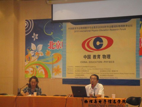 “中国教育学会物理教学专业委员会2010年年会暨国际物理教育论坛”于8月5~8日在北京师范大学召开。来自美国和中国的物理教育专家、学者、全国各省市教研人员及教师代表300余人参加了此次论坛。全国教育学会物理教学专业委员会学术委员、高师工作委员会副主任、我校球吧网