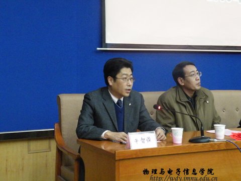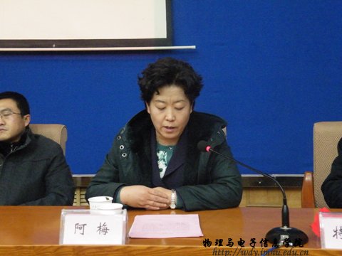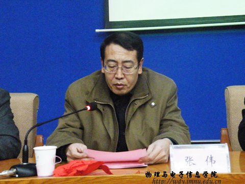 张伟院长关于学院近4年来的科技工作总结报告。报告指出,近四年学院取得了显著的科研成果,全院教师共发表学术论文 228篇,其中被SCI、EI收录 81 篇,在中文核心期刊发表 26篇,会议论文17篇;获国家级科研项目11项,自治区、部级19项,校级14项;获自治区级奖励2项,校级12项;主编教材3部,出版专著1部。四年内立项科研经费共计590万元左右,年均100万以上。特别是特古斯教授获得内蒙古人才引进资助资金合计400万元,他主持的内蒙古师范大学与阿姆斯特丹大学科技合作与学术交流项目已进行了8年,该项目为学院人才培养、科研基地的建设、学术水平的提高等方面做出了重要贡献。学院青年教师那日苏荣获2009年度国家自然科学基金青年项目资助,这是我校历史上获准的第一个国家自然基金青年项目。