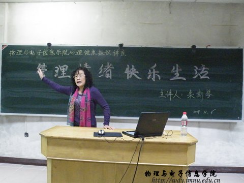 同学聆听了内蒙古大学心理咨询中心朱斯琴老师精心准备的心理健康知识教育讲座。朱老师以生动的图片和道理来指导我们如何过好大学生活。