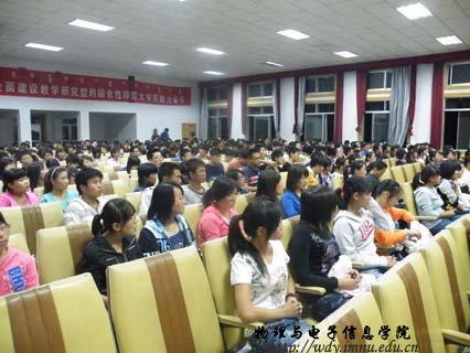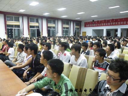 9月17日晚7点30分,球吧网 09级新生在生物楼报告厅听取了爱国主义专题讲座.会上,满时新老师对新生们进行了爱国主义教育,激励了大家的爱国主义情怀.通过这次专题讲座,学生们更加深入的了解了爱国主义精神,并使爱国主义理念深入人心.