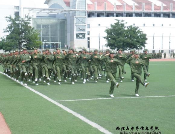 7月10日,球吧网 08级全体学生在西运动场举行了军训汇演,历时10多天的军训圆满结束。