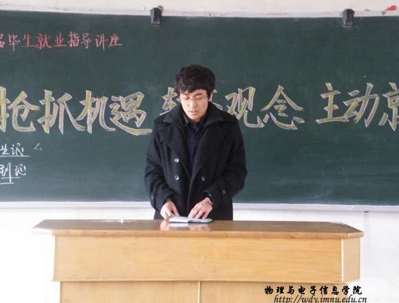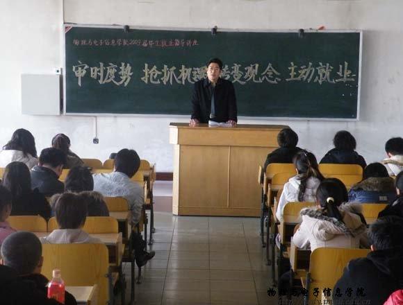 在信息楼三共举办了以“审时度势、抢抓机遇、转变观念、主动就业”为主题的2009届毕业生就业指导讲座。学院副书记兼副院长辛智俊老师主讲,团总支、学工办负责人、各毕业班班主任以及全体毕业生参加了讲座。
