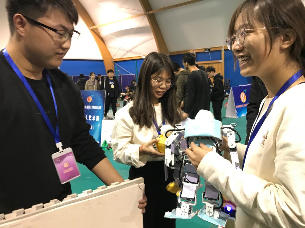 11月15日,在段国俊老师的带领下,18工程班杨心怡,郑秋,刘原源三位同学参加了2019华北五省(市、自治区)大学生机器人大赛总决赛,总决赛在北京信息科技大学举办。共有来自北京、天津、内蒙古自治区、山西、河北的95所高校的629支队伍参赛,最后在机器人团体舞蹈赛的95个队伍中,“crazy疯狂舞蹈队”层层高攀,获得了二等奖。