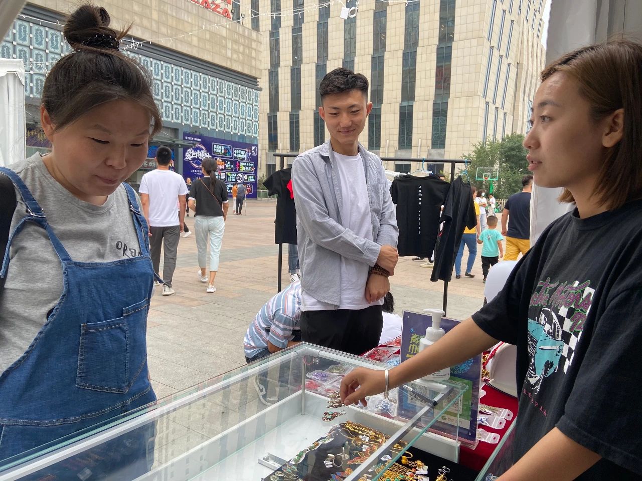 店铺,纷纷光顾摊位附近,不仅自己购买货物,更主动向身边人宣传,带动了货物的销售。