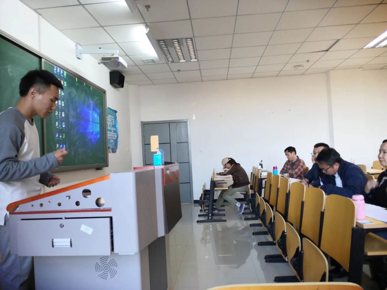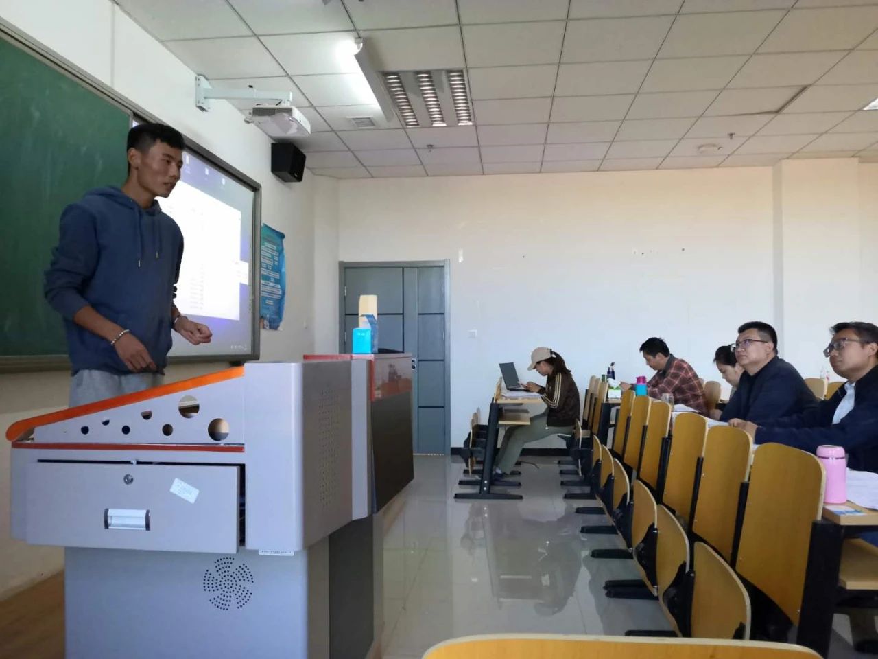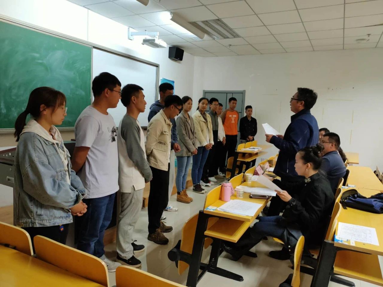 学生的教学风采。比赛末尾,公布结果17级何良,18级伊丽琦获得一等奖,18级陶利、阿音、兴安、哈拉木吉获得二等奖,17级朝鲁门、海日汗,18级呼和、苏日乐木、热迪获得本次比赛三等奖。各位老师对每一位参赛者进行了点评,指出优缺点,并给予建议与鼓励,让学生们自主归纳总结教学上的不足,能够更好的提高自身教师教育技能,以赛促学。