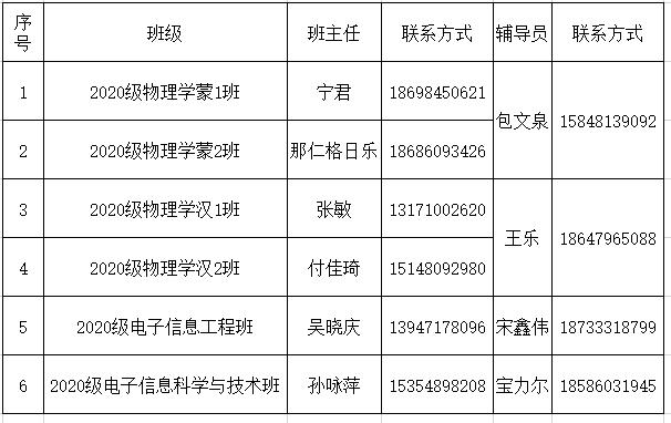 附:各班班主任辅导员及办公室联系方式