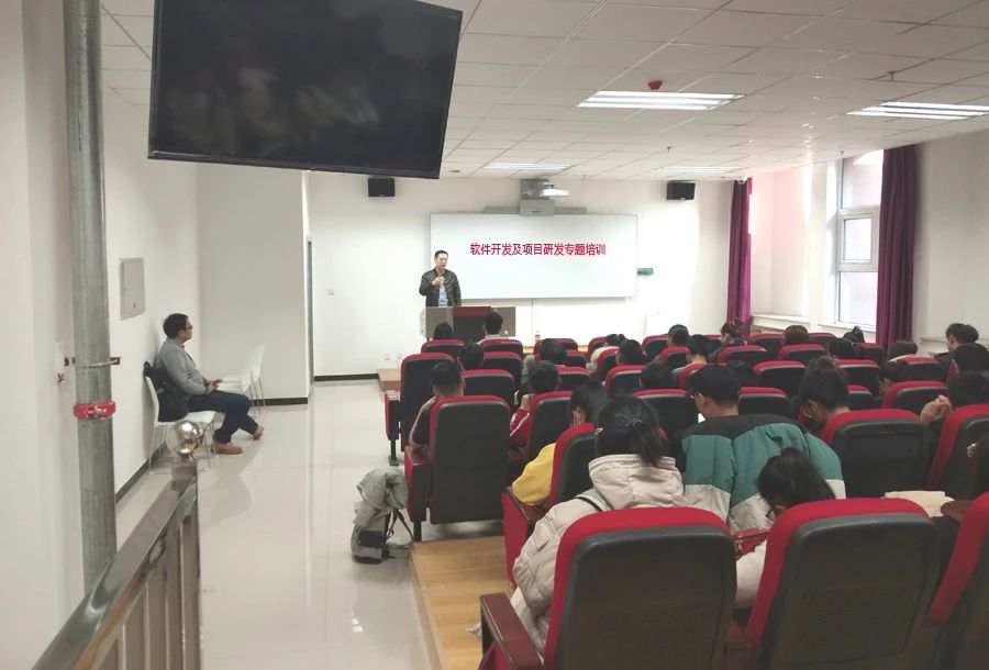 培训开始,吴迪老师首先为同学们讲解了内蒙古科电数据服务有限公司的人才培养目标和计划,毕业优先录取学习成绩好、有耐心,且对于软件开发学习有兴趣的实验室人员,鼓励同学们积极主动参与项目。之后,王文杰老师介绍了具体的培养方案,学院定期进行工作室人员甄选,对大一至大四学生形成循环人才输入。公司定期对工作室人员进行培训和考核,讲解数据结构、算法等相关知识。公司提供研发项目作为实践项目,由甲方选拔的工作室人员进行实践开发。最后,杨帆老师请两位学长分享了自己的学习经历,鼓励同学们动手实践,增长实用技能。