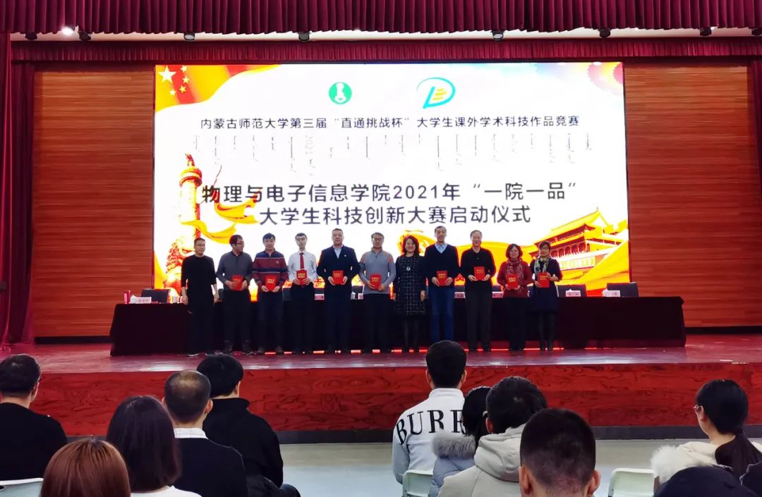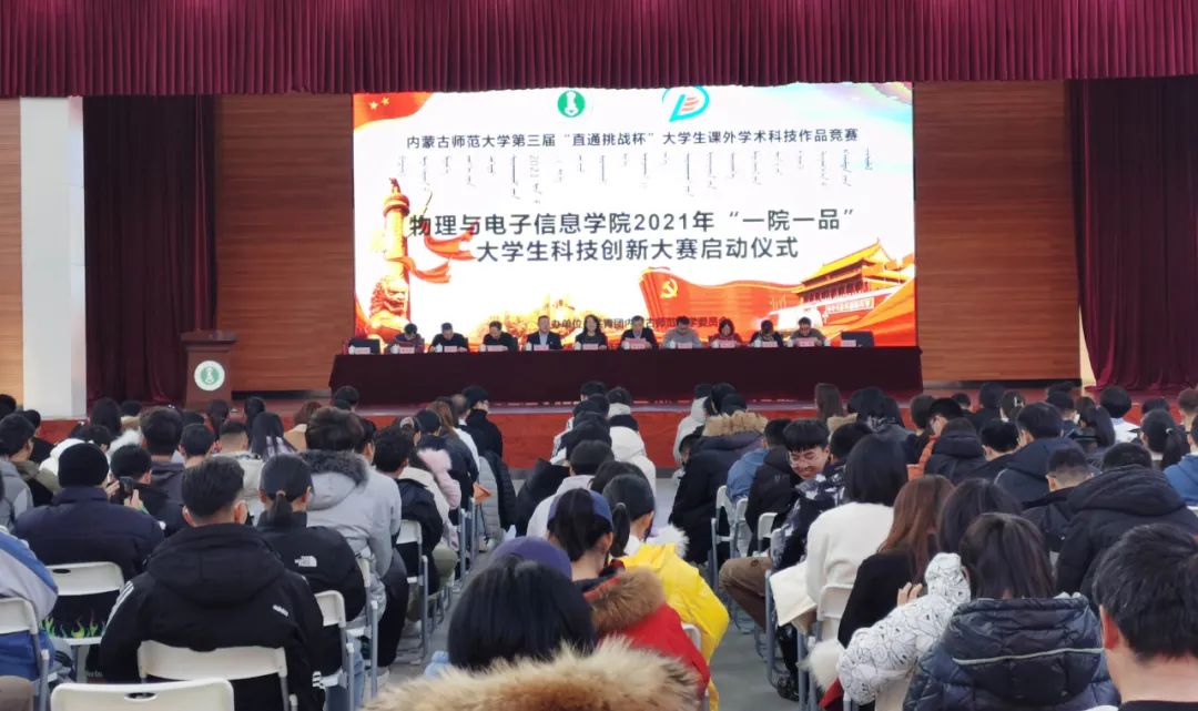 在盛乐校区学生事务中心二楼多功能演播厅举办2021年“一院一品”大学生科技创新大赛启动仪式。本次活动由校团委主办,球吧网