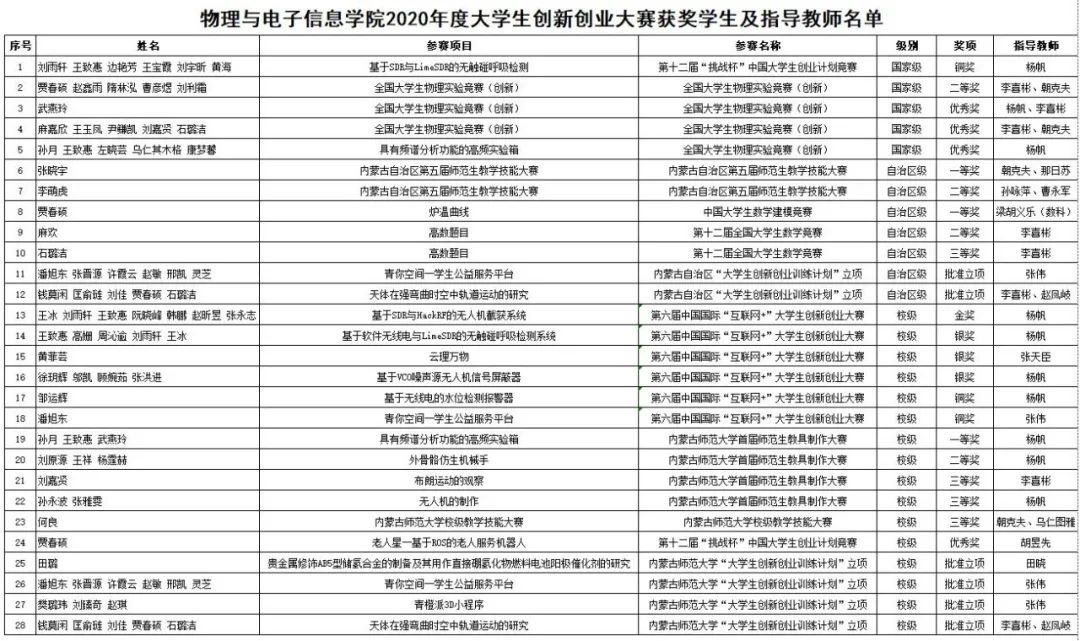 教师曹永军、张伟、那日苏、赵凤岐、田晓、孙咏萍、乌仁图雅、朝克夫、张天臣、杨帆、李喜彬等获2020年度创新创业优秀指导教师奖。