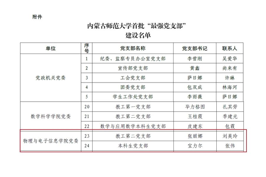 根据《关于印发<内蒙古师范大学“最强党支部”建设实施方案>的通知》(校党组字〔2020〕9 号)要求,经党支部自评申报、学院党委初步推荐,校党委组织部遴选,结合样板党支部和“双带头人”党支部书记工作室验收情况,经学校党委会研究,首批确定建设 49 个内蒙古师范大学“最强党支部”。球吧网