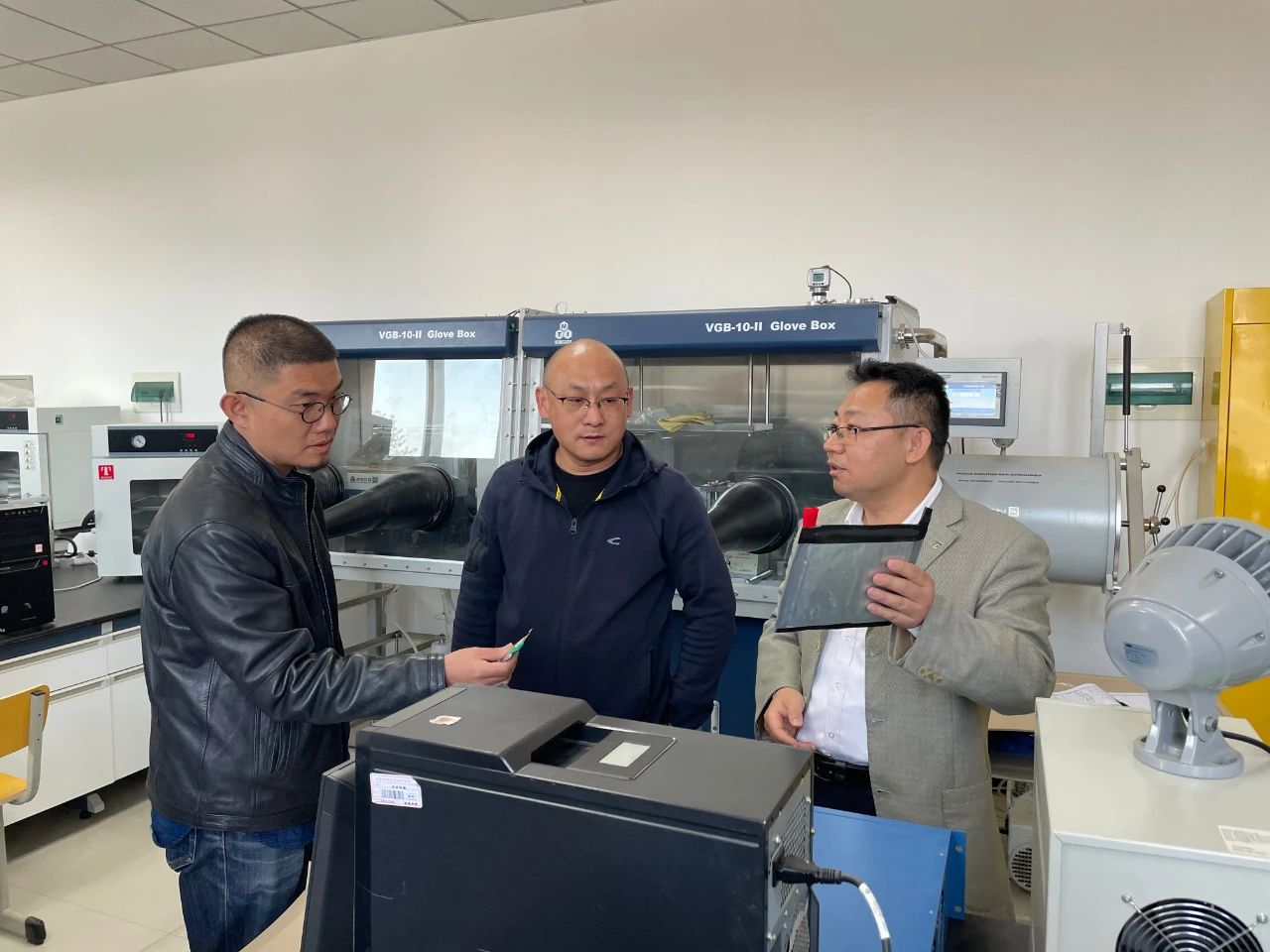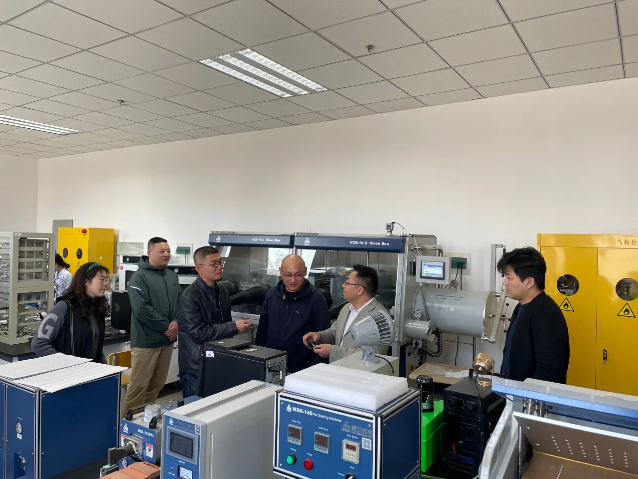 目前锂电池技术实验室的科研成果进行了细致的了解后,结合产品设计、产品应用与包装,以及两学院双创工作进一步合作等内容进行了深入的探讨。
