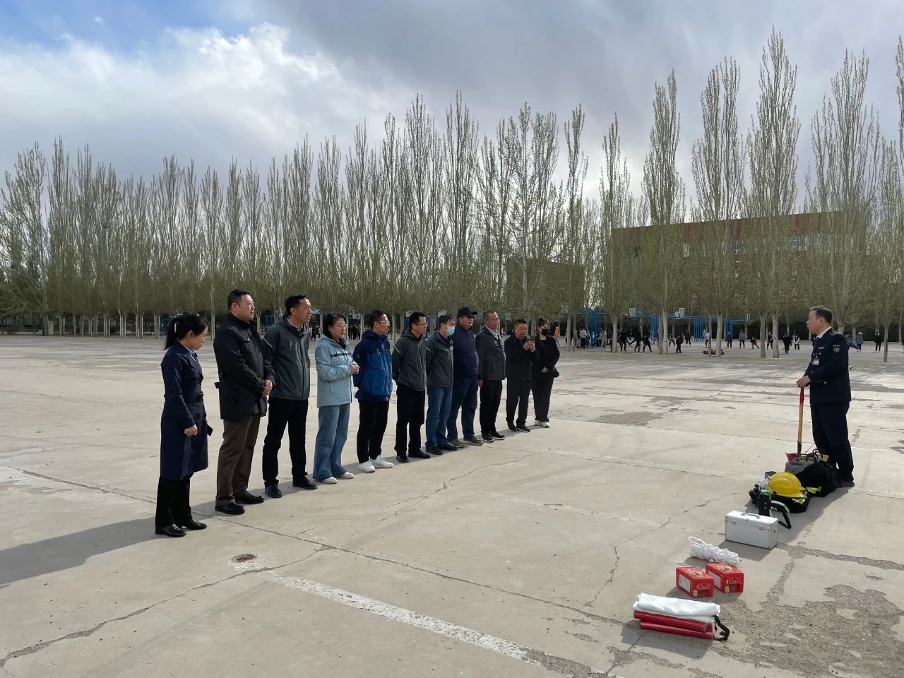 讲座结束后,为使师生能在火灾来临时冷静应对,以防万一,正确使用灭火器等消防器材,在盛乐校区西篮球场进行现场消防演练。主讲老师现场演示了灭火器的使用方法,着重强调了其使用注意事项。随后,学院老师们分组有序地对模拟火灾消防灭火进行了实际演练,确保当面临火灾时能有序应对、紧密配合,争取将生命财产等各类损失损失降到最低。