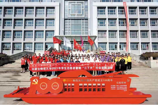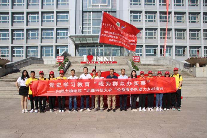 “北疆科技支农”公益服务队与内蒙古师范大学志愿者服务总队、音乐学院、体育学院、美术学院、心理学院在赛罕校区田楼前参加了“三下乡”社会实践活动出征仪式。内蒙古师范大学党委委员、副校长宫箭出席仪式并讲话。
