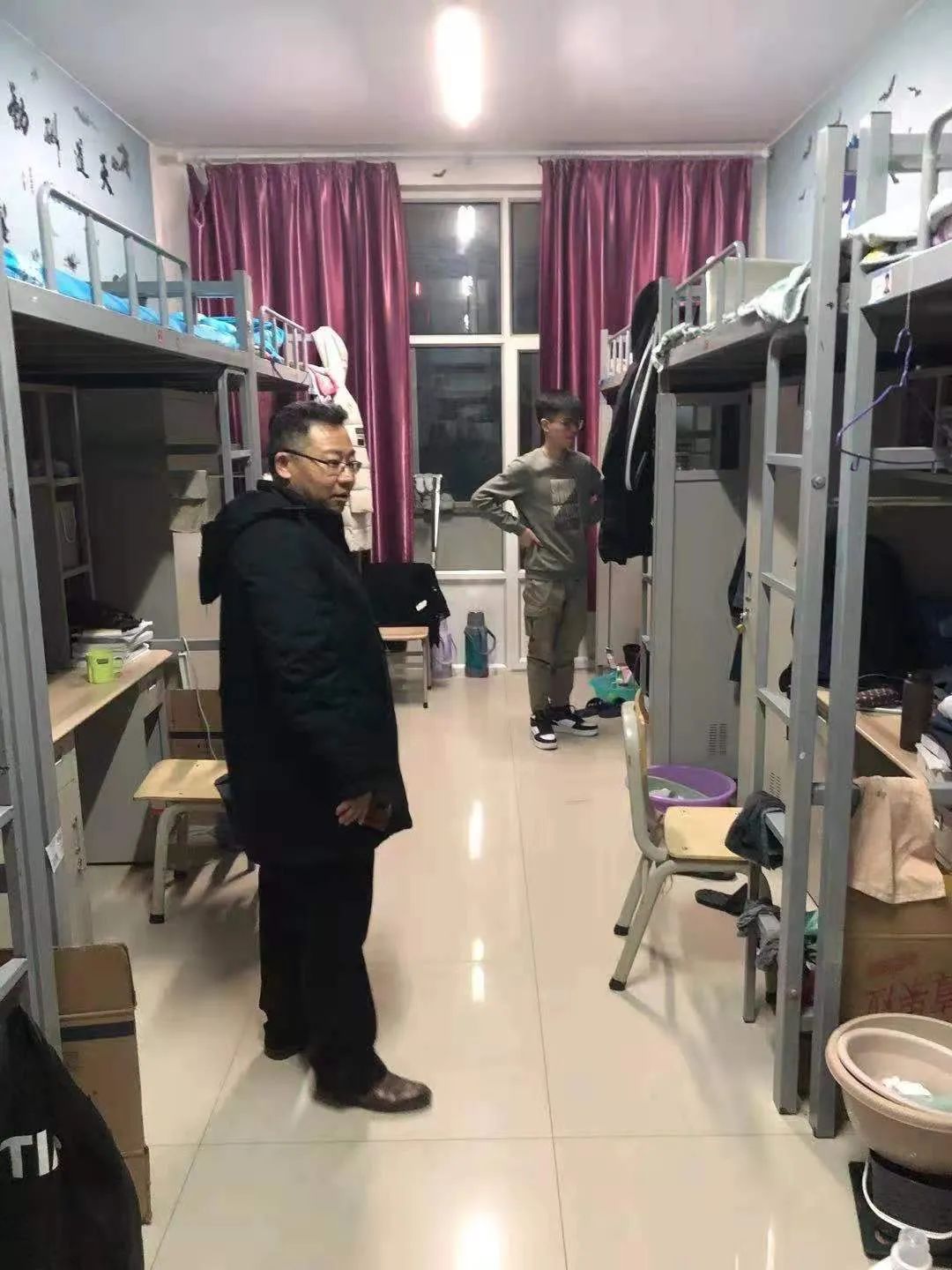 各班班主任深入班级宿舍检查。检查内容主要包括:公寓地面、床铺的整洁,床上是否存在杂物,生活用品摆放是否整洁,宿舍内有无明显异味以及宿舍电源使用情况,着重对宿舍内是否存在使用违规电器以及用电安全隐患等相关问题进行排查。