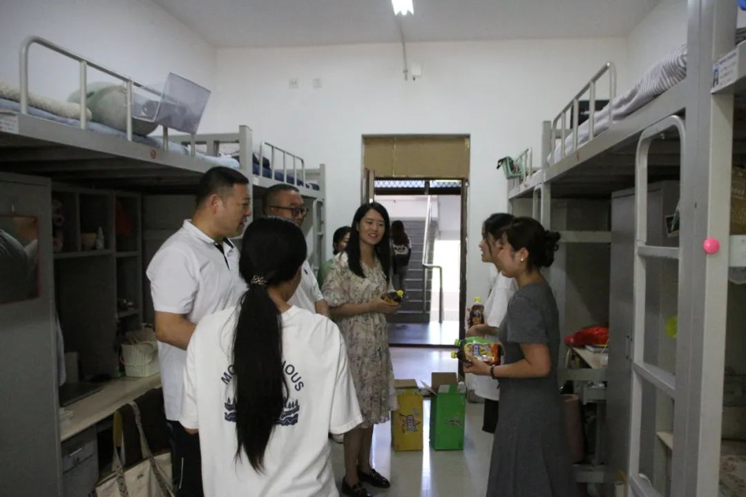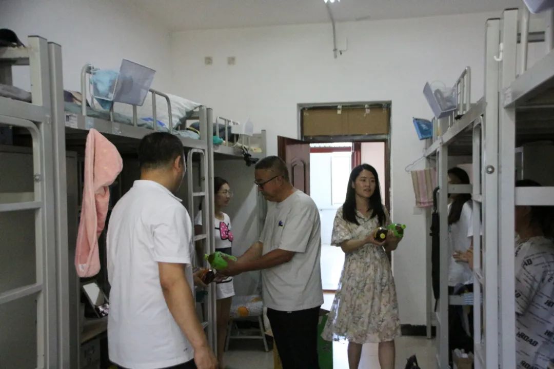 炎炎夏日送清凉,丝丝关心润心田。正值酷暑,物电院领导、老师十分牵挂在炎炎夏日中学习的学生,为充分了解学生返校后的学习与生活状况,鼓舞学生士气,8月5日,学院党委副书记兼副院长张伟、团总支副书记宝力尔、班主任代表2021级物理学蒙班班主任那日苏老师一行前往宿舍楼慰问球吧网