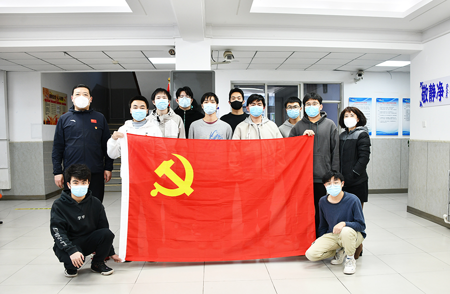 本科生支部13名学生党员组成的临时党支部面对党旗庄严地重温了入党誓词,立下了坚决打赢新冠肺炎阻击战的军令状。