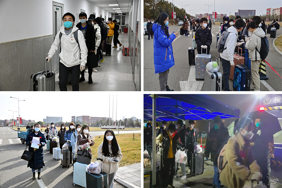 疫情防控是一场没有硝烟的攻坚战,非团结协作难以胜利。自从接到返乡工作以来,驻楼辅导员老师每天及时更新上报数据、下达通知,护送学生,保障了返乡工作的顺利进行。西七学生公寓驻楼文学院辅导员李伟老师先后于10月28日赴鄂尔多斯、11月1日赴赤峰、11月9日赴哈尔滨,区内外总计送了3次学生。驻校教职工舍小家顾大家,与学生吃住在一起勠力鏖战疫情,圆满完成组织学生返乡等疫情防控各项工作任务。