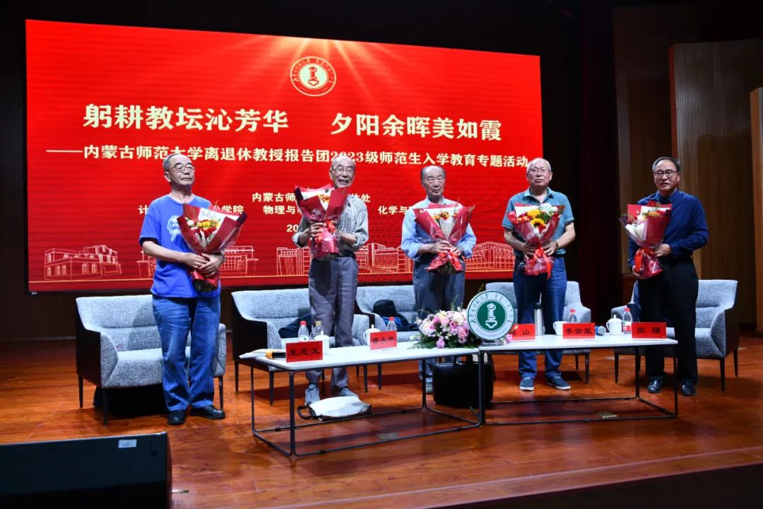 、化学与环境科学学院承办的躬耕教坛沁芳华,夕阳余辉美如霞——内蒙古师范大学离退休教授报告团2023级师范生入学教育专题活动在盛乐校区图书馆二楼报告厅举行。
