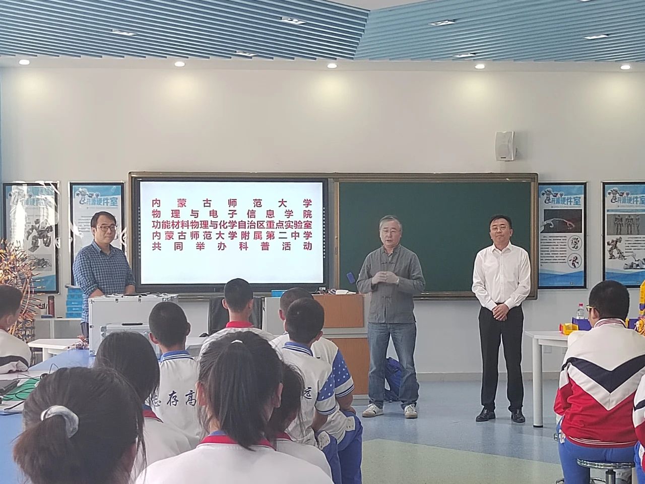 特古斯教授与杨帆老师应邀前往内蒙古师范大学附属第二中学,为学校的同学们进行了一场精彩的仿生机器人科普宣讲活动。