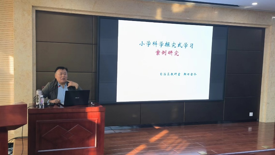 除了对新课程标准的充分解读,如何将课标中的新要求和新理念有机地融入教学实践中,以确保学生能够获得更加综合、深刻和有意义的教育体验也是一个重要的议题。这一挑战不仅需要教育者深刻理解新课程标准的内涵,还需要其在实际教育工作中进行创新和适应,以满足现代学生的需求,斯日古令老师针对这一议题结合自身教学经验,以探究式学习为主题为参训学员们提供了生动详实的案例,帮助教师在教学中落实新课程标准。