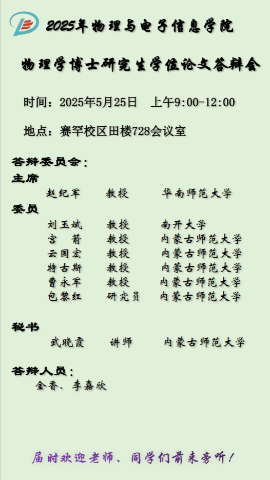 2025年球吧网 物理学博士研究生学位论文答辩会