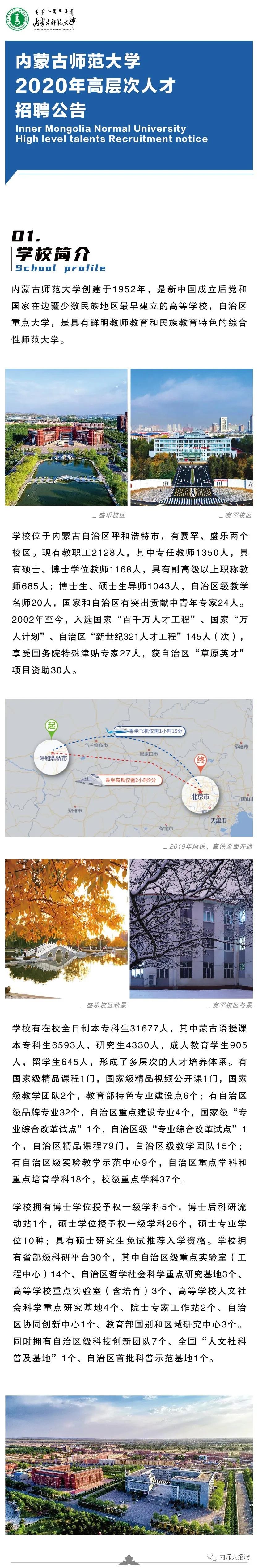 内蒙古师范大学2020年高层次人才招聘公告