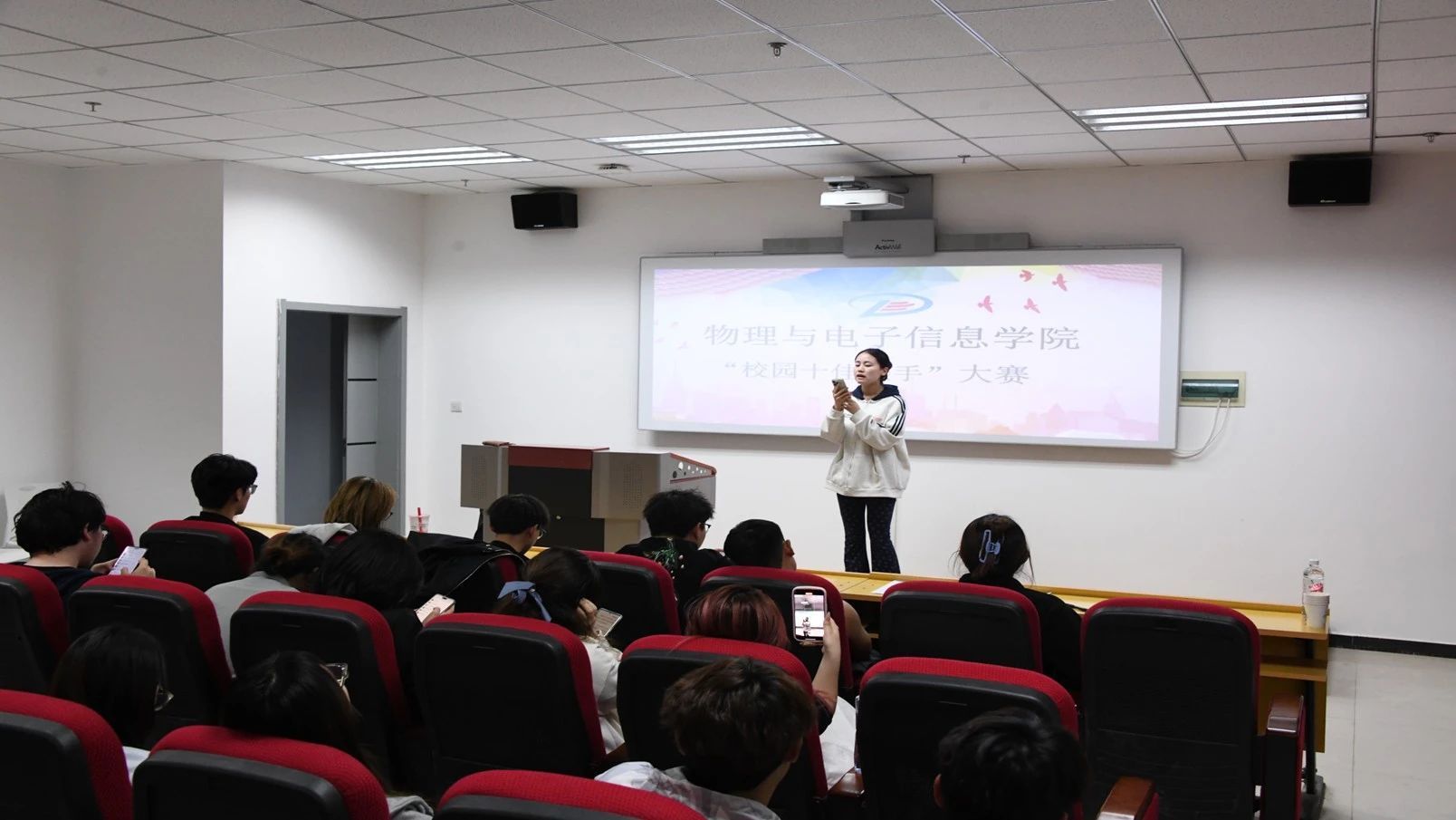 青春歌者竞放异彩,参赛选手们倾情演绎拿手金曲,展开一场精彩绝伦的声乐盛宴。在这个闪耀的舞台上,年轻的心跳与艺术的灵魂激情碰撞,每位参赛者都绽放着最耀眼的光芒。他们用充满张力的歌声点燃全场,让整个赛场沉浸在音乐的海洋中,欢呼声此起彼伏,将比赛氛围推向一个又一个高潮。最终推选出 2023级材料物理班 邵熙然,2024级物理三班 才让三知两位同学参加校赛,期待他们的精彩表现!
