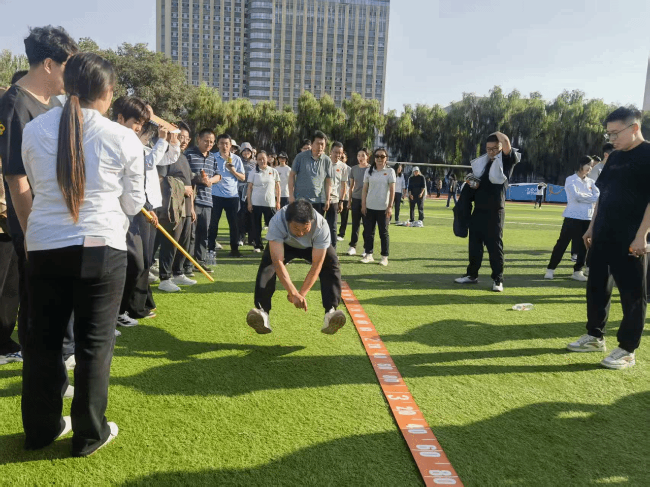 从考验绝对速度的百米跑道,到需要默契无缝的4×100米接力;从力与技巧结合的铅球投掷区,到趣味横生的“cosplay60米”、“旱地龙舟”赛场,都活跃着物电教师的身影。他们为每一次有效的传递而击掌,为同伴的每一次努力而呐喊,将团队协作精神体现得淋漓尽致。
