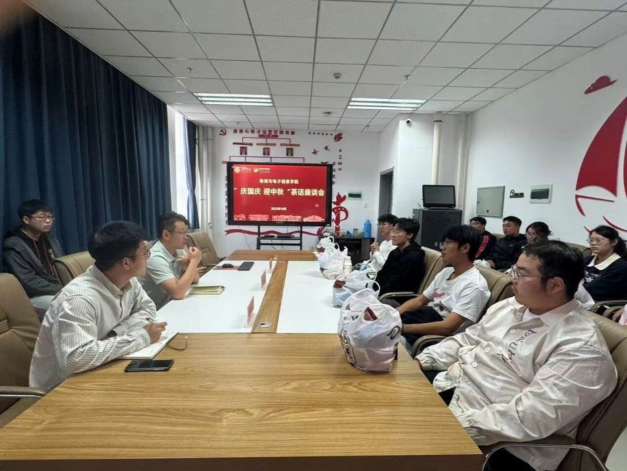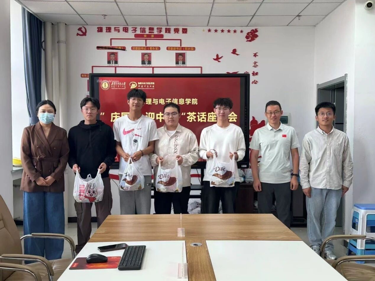 在理工楼A座904B举办了“庆国庆、迎中秋”茶话会。活动由党委副书记、副院长欧志强主持,学工组老师及受资助的留校同学共同参与。