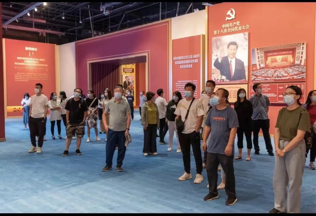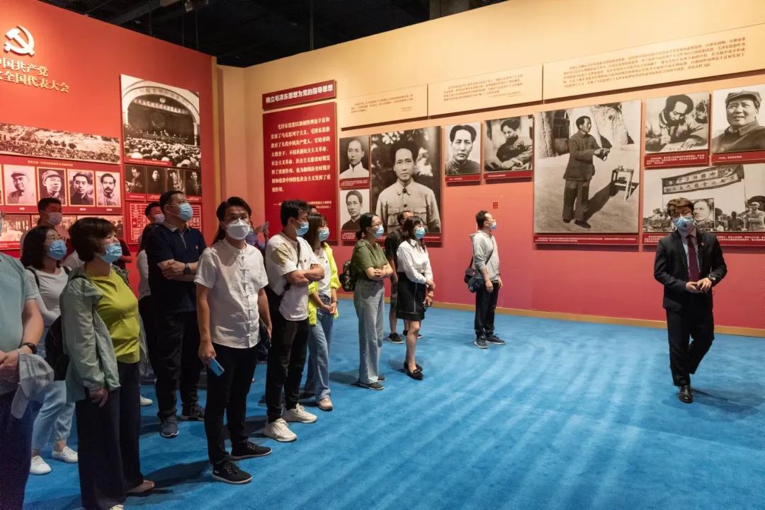 大家逐一参观各个展区,认真听取讲解,详细询问有关情况,不时驻足察看文献资料、互相交流讨论,一起重温党的历史。