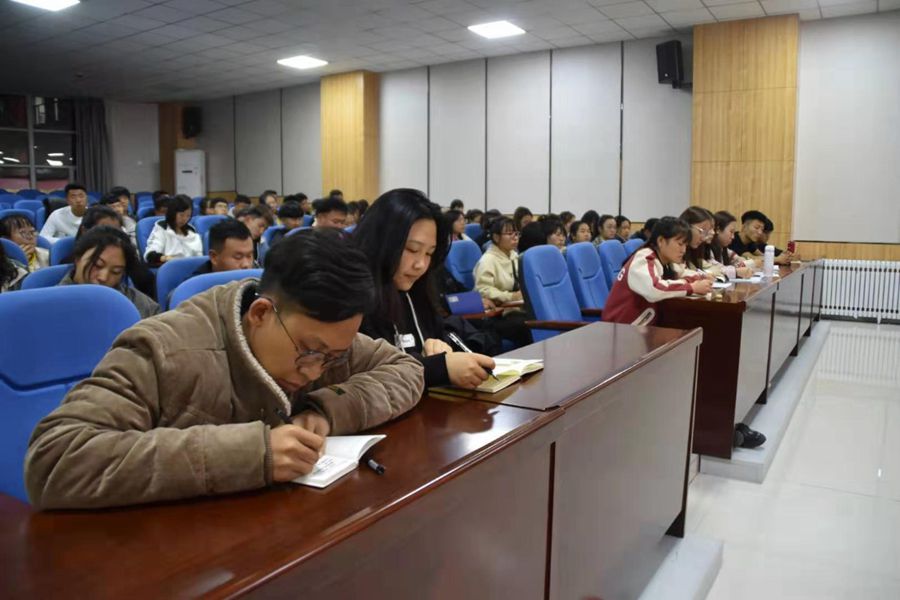 讲座以理论与实践相结合,从学生干部的“初心”是什么、怎么认识学生干部、学生干部应起到的作用、怎样做才能成为一名优秀的学生干部、学生干部应怎样处理好几个关系等五个方面与大家展开讨论。张伟老师指出,一名优秀的学生干部就是一个榜样、一面旗帜,对周围同学有着以其他方式不可替代的示范作用。在学习上,要努力学好专业知识、力争上游;在工作中,要发扬艰苦奋斗精神、不怕吃苦、敢于担当。要在实践活动中增长知识、锻炼能力、提升素质,要制定长远目标、确定努力方向,并用脚踏实地的意志去践行新时代赋予当代青年的历史使命。