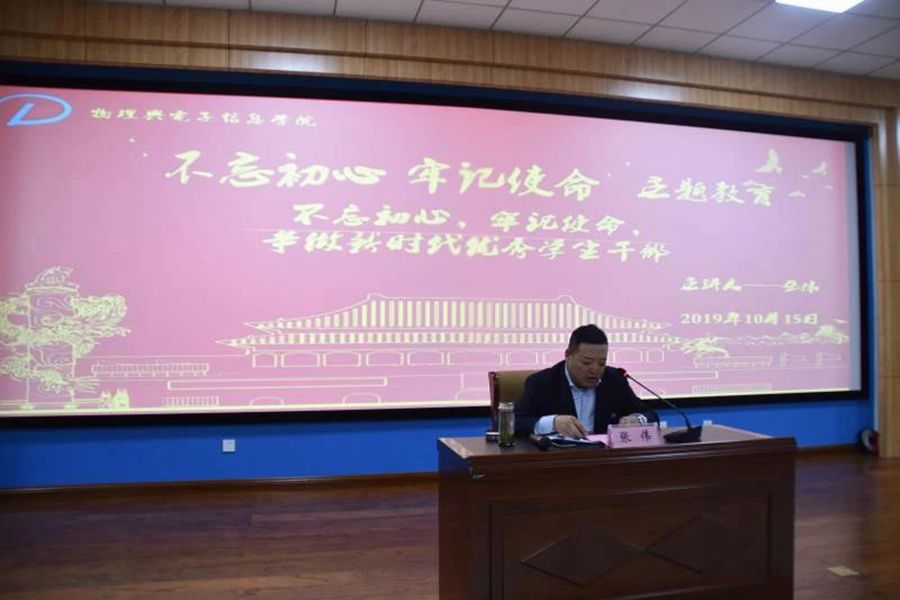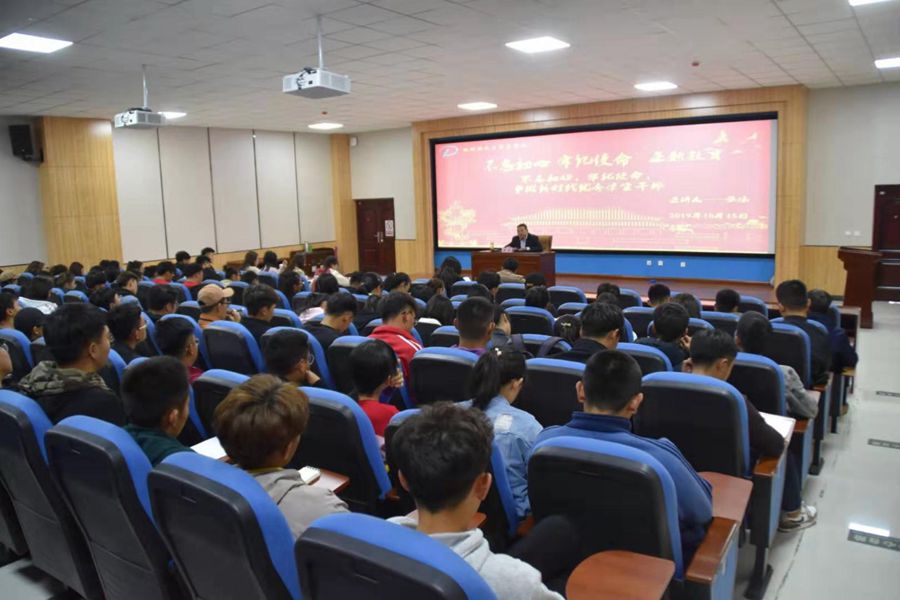 组织开展了2019学年学生干部培训。本次培训以“不忘初心,牢记使命,争做新时代的优秀学生干部”为主题,由学院党总支副书记兼副院长张伟主讲,学院团学负责老师、辅导员与学生会、各班团学生干部等100余人参加培训讲座。