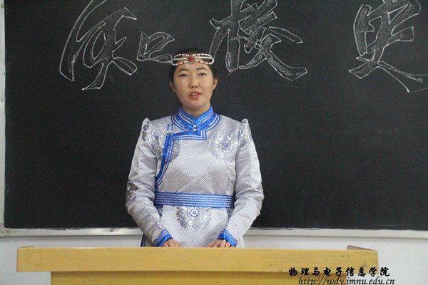 于田楼130由学生会学习部举办主题为“知校史,明校情”蒙语演讲比赛。此次比赛有六名选手参加,由历届优秀选手担任评委。同学们围绕大学及大学生活进行了精彩的演讲。同学们从师大历史讲起,从最初的艰苦生活到如今的勃勃生机。讲出了每个学生心中最为憧憬的师大。在比赛接近尾声的时候,来自15物蒙班的白戈力同学以一首激情澎湃的马头琴曲赢得了阵阵掌声。最终,来自15科技班的诺明同学以深情的朗诵和出色的发挥赢得了第一名。此次比赛给同学们提供了一个展现自我的舞台,对校史情有了更深刻的了解。