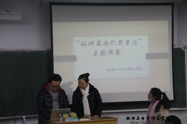 博士后研究员阿拉腾宝力格老师,开展“科研离我们有多远”主题讲座,学工办萨其尔老师出席此次活动。